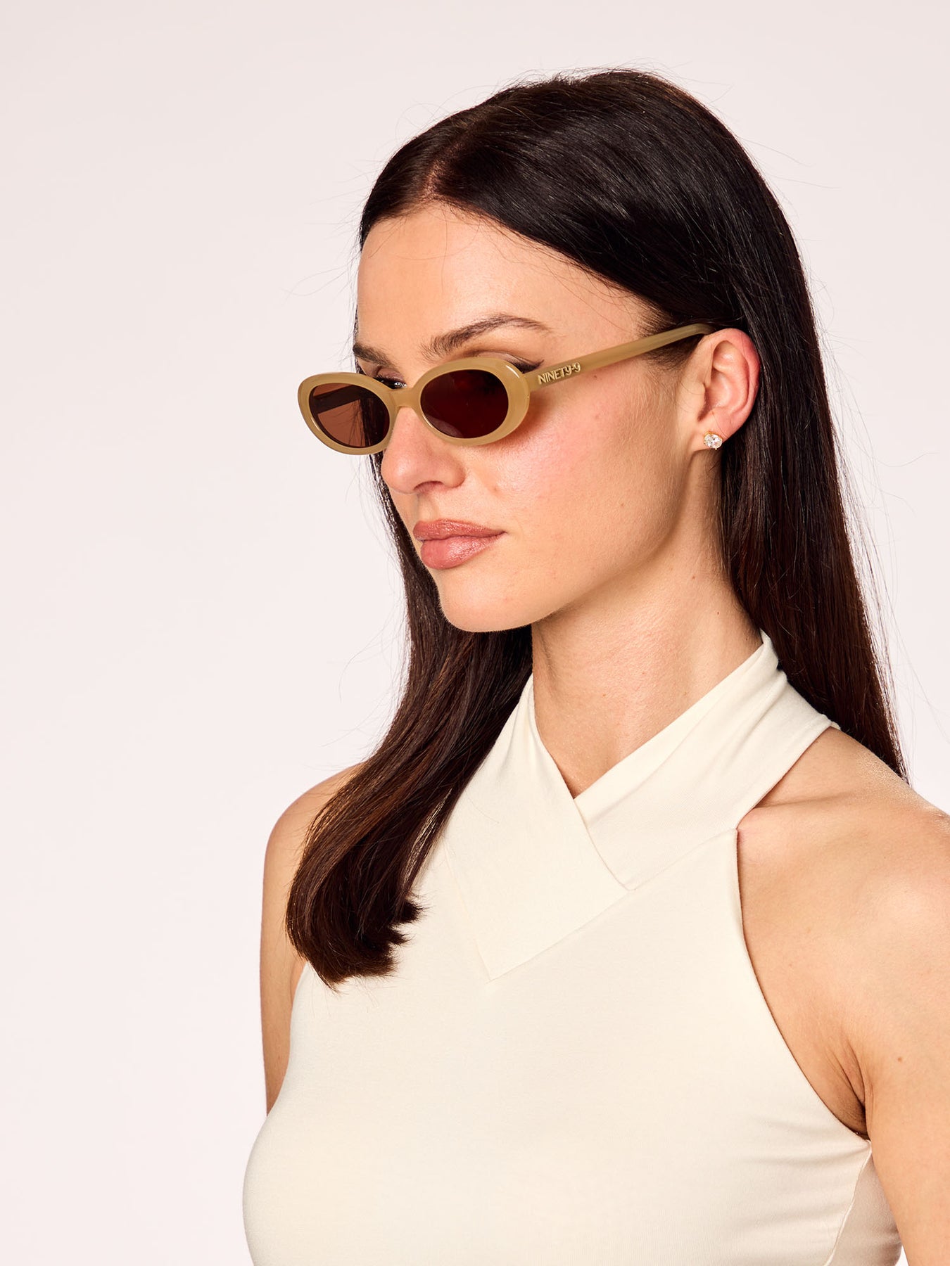 Our Oval Sunglasses are the most perfect classic roundend sunglasses that give any outfit an elegant vintage look. The high-quality acetate temples are embellished with our gold colored logo.