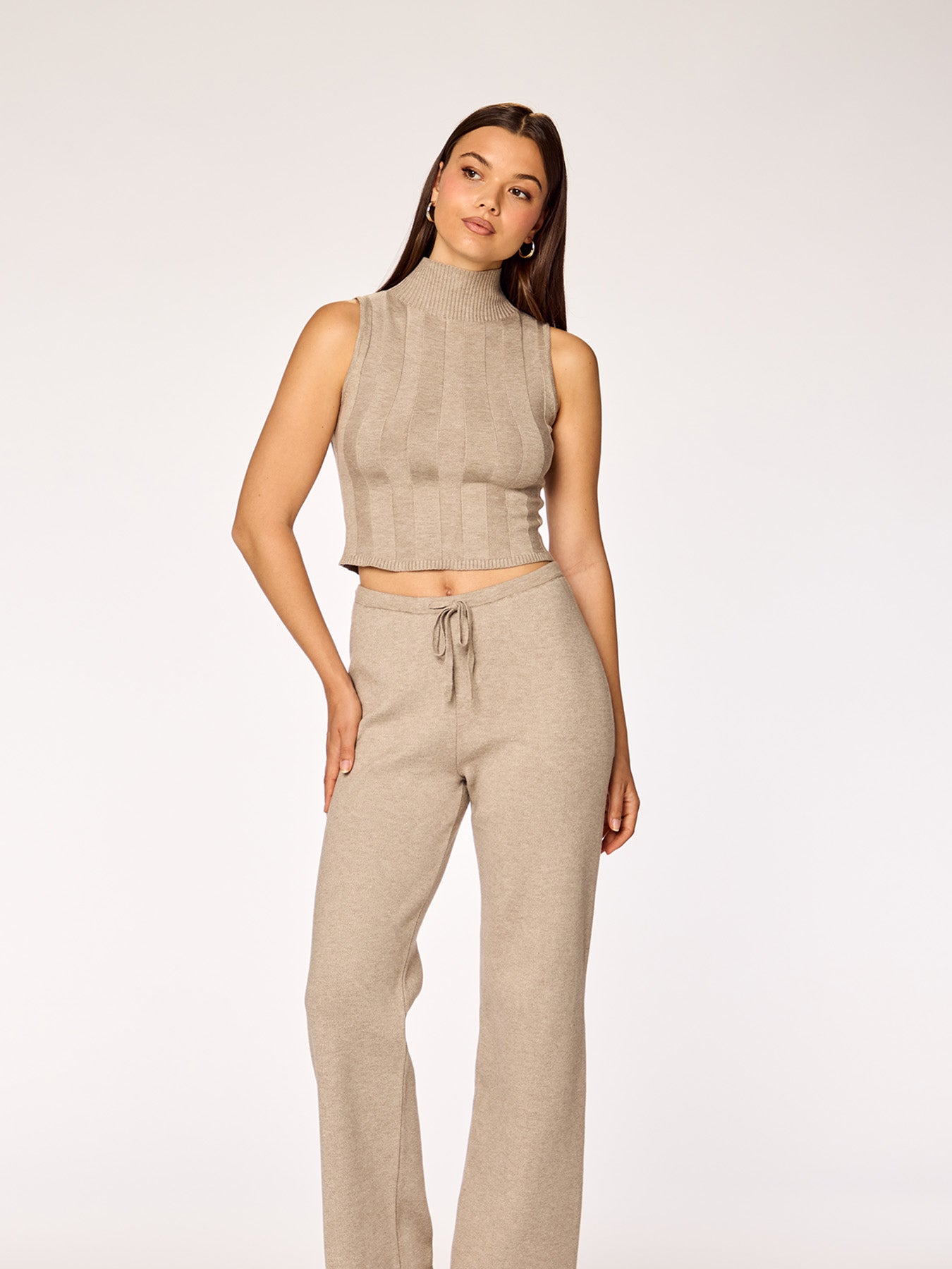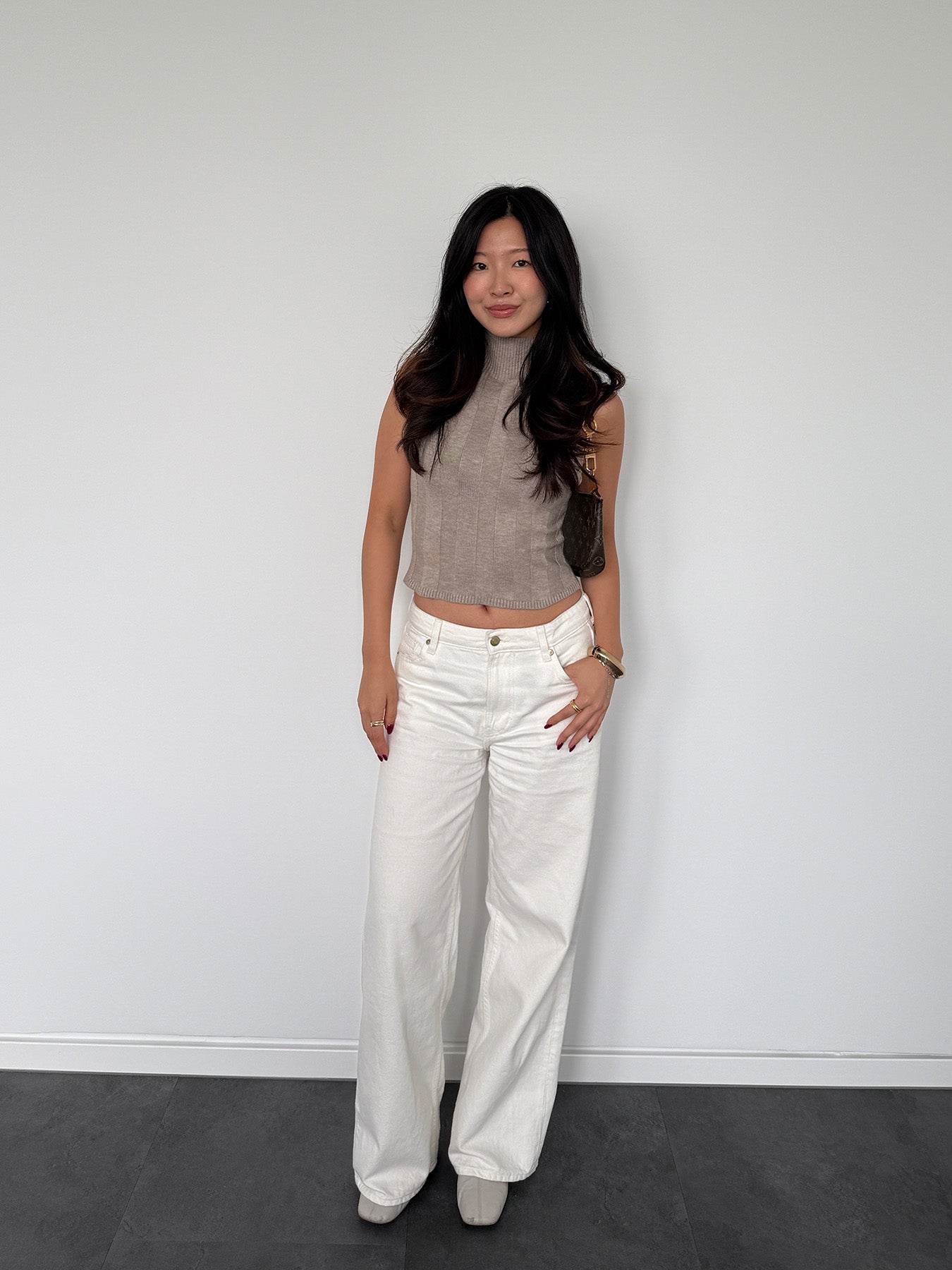 Eine perfekte Mischung aus Komfort und Kontur, dieses ärmellose Top mit hohem Kragen ist darauf ausgelegt, gemütliche und gleichzeitig schlanke Looks zu kreieren. Hergestellt aus einem weichen Strick, bietet es einen sanften Stretch, der deine Figur an den richtigen Stellen umschmeichelt. Dieses Top mit hohem Kragen ist dein neues unverzichtbares Kleidungsstück, um moderne, elegante und zeitlose Looks zu kreieren.
