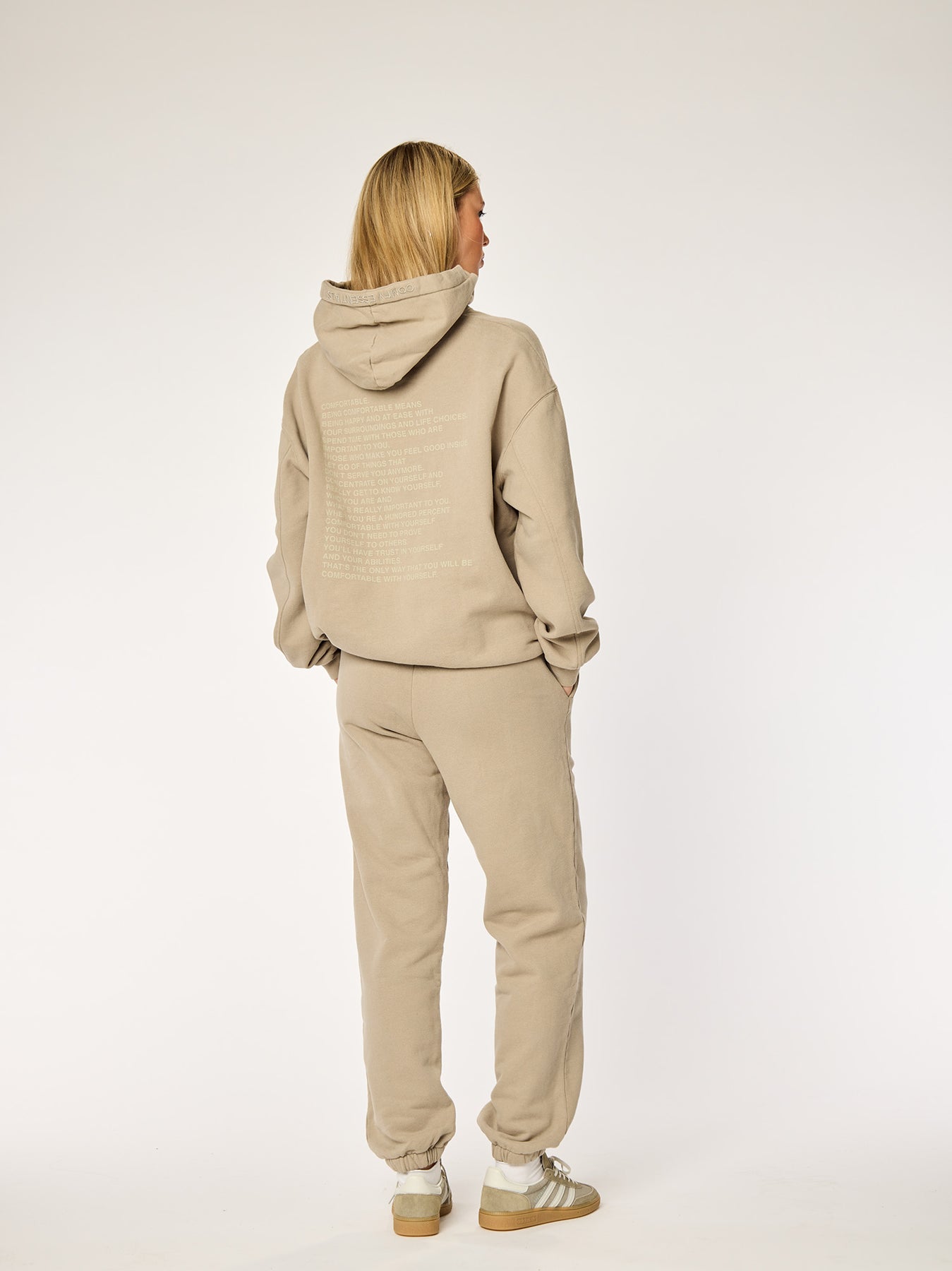 Unsere Essentials Sweatpants sind etwas oversized, aber nicht zu sehr, um die perfekte Passform zu schaffen. Sie haben Schnüre im Inneren des Bundes, sodass Sie die Sweatpants anpassen können, ohne dass Schnüre außen sichtbar sind, und sie sind schön an den Knöcheln gesäumt.